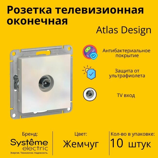 Купить Розетка телевизионная оконечная Schneider Electric (Systeme Electric) Atlas Design 1дБ, Жемчуг ATN000491 - 10 шт.
