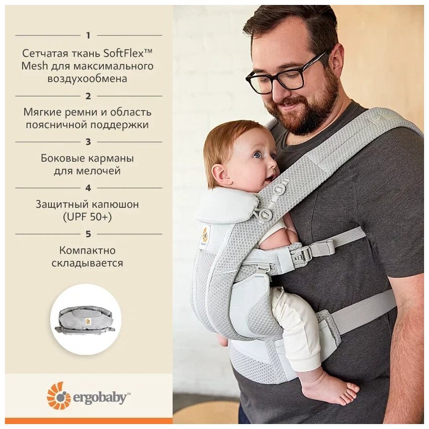 Эргорюкзак- хипсит для малышей от 0 / Ergobaby OMNI Breeze - Pearl Grey/ сумка рюкзак для мамы