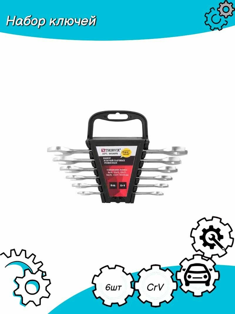 Набор Ключей Рожковых На Пластиковом Держателе 8-19 Мм, 6 Предметов THORVIK арт. W1S6PR