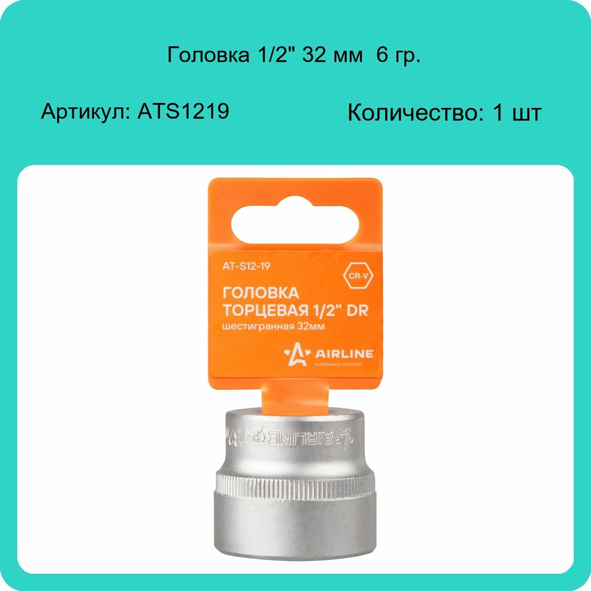 Головка Торцевая 1/2 Dr Шестигранная 32Мм Пласт. Подвес (At-S12-19)_Мо AIRLINE арт. at-s12-19