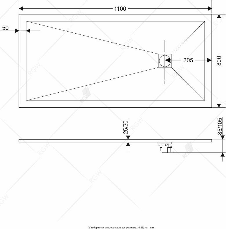 Купить Душевой поддон RGW 80х110х2,5 см ST-0118G Графит, Прямоуг Ø90 Каменный (16152811-02)