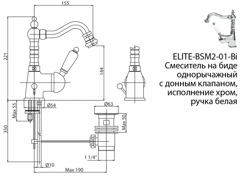 Смеситель для биде Cezares ELITE BSM2 (ELITE-BSM2-03-M)