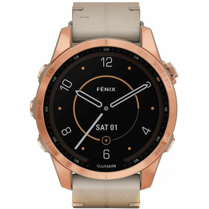Смарт часы FENIX 7S Sapphire Solar с титановым безелем цвета розовое золото и песчаным кожаным ремешком Garmin (010-02539-35)