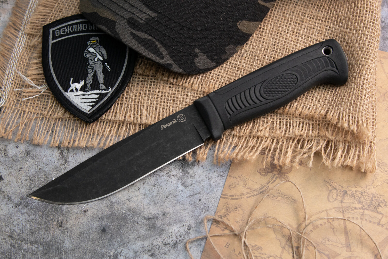 Туристический нож Речной, сталь AUS8, рукоять эластрон, черный