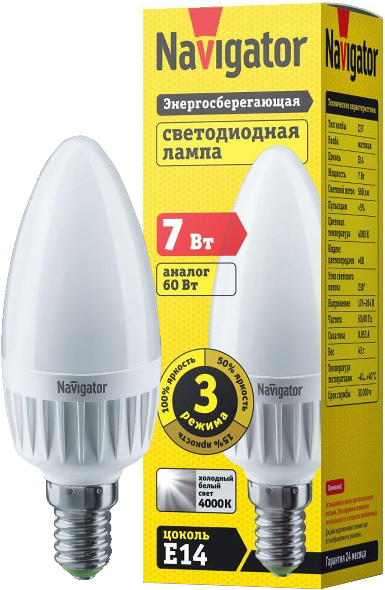 Лампа Navigator NLL-C37-7-230-4K-E14-3STEPDIMM