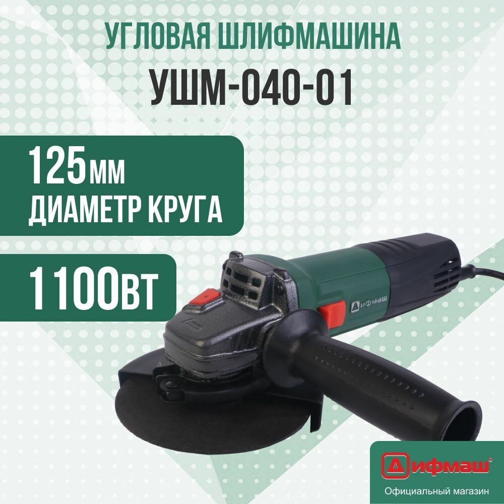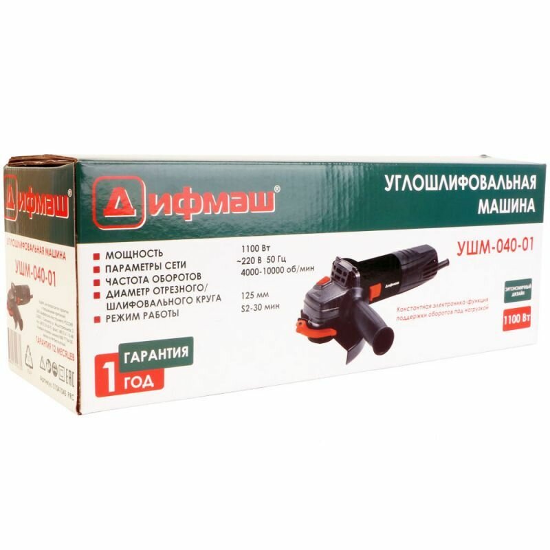 Машина шлифовальная угловая дифмаш УШМ-040-01 (болгарка, УШМ), 125 мм, 1100 Вт, 4000-10000 об/мин, константная электроника, плавный пуск интересное: