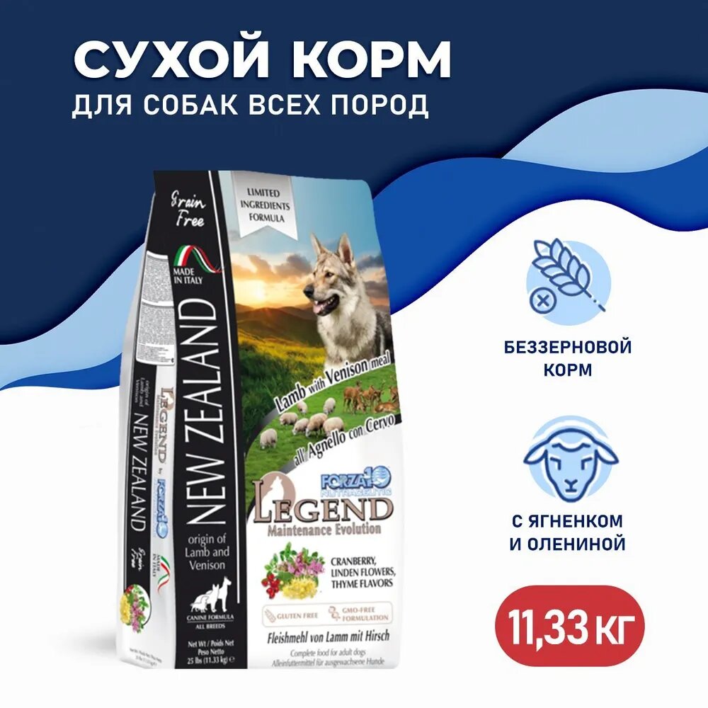 FORZA10 DOG LEGEND NEW ZELAND ALL BREEDS беззерновой для взрослых собак всех пород с ягненком и олениной (11,33 кг)