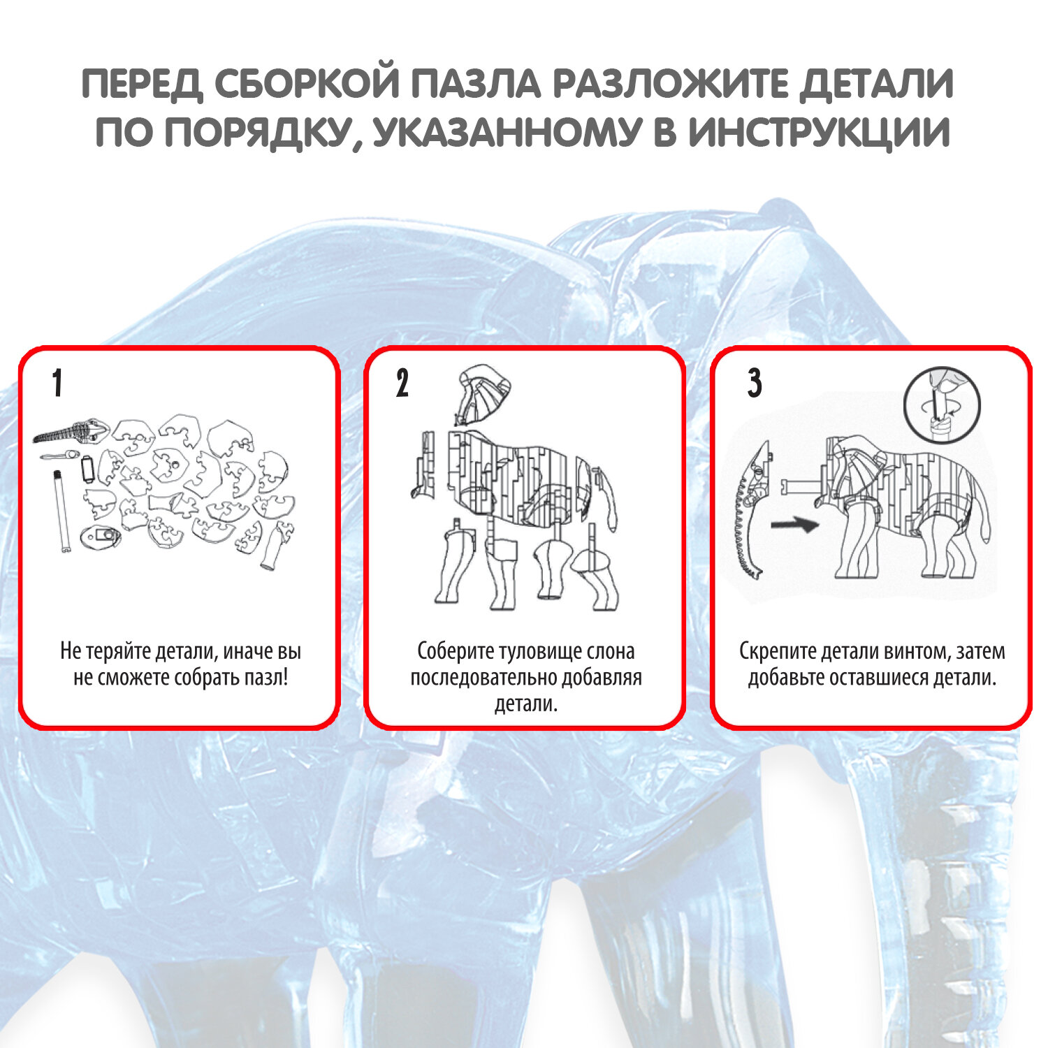 Пазл 3D кристаллический "Слон", 41 деталь (1 шт.)