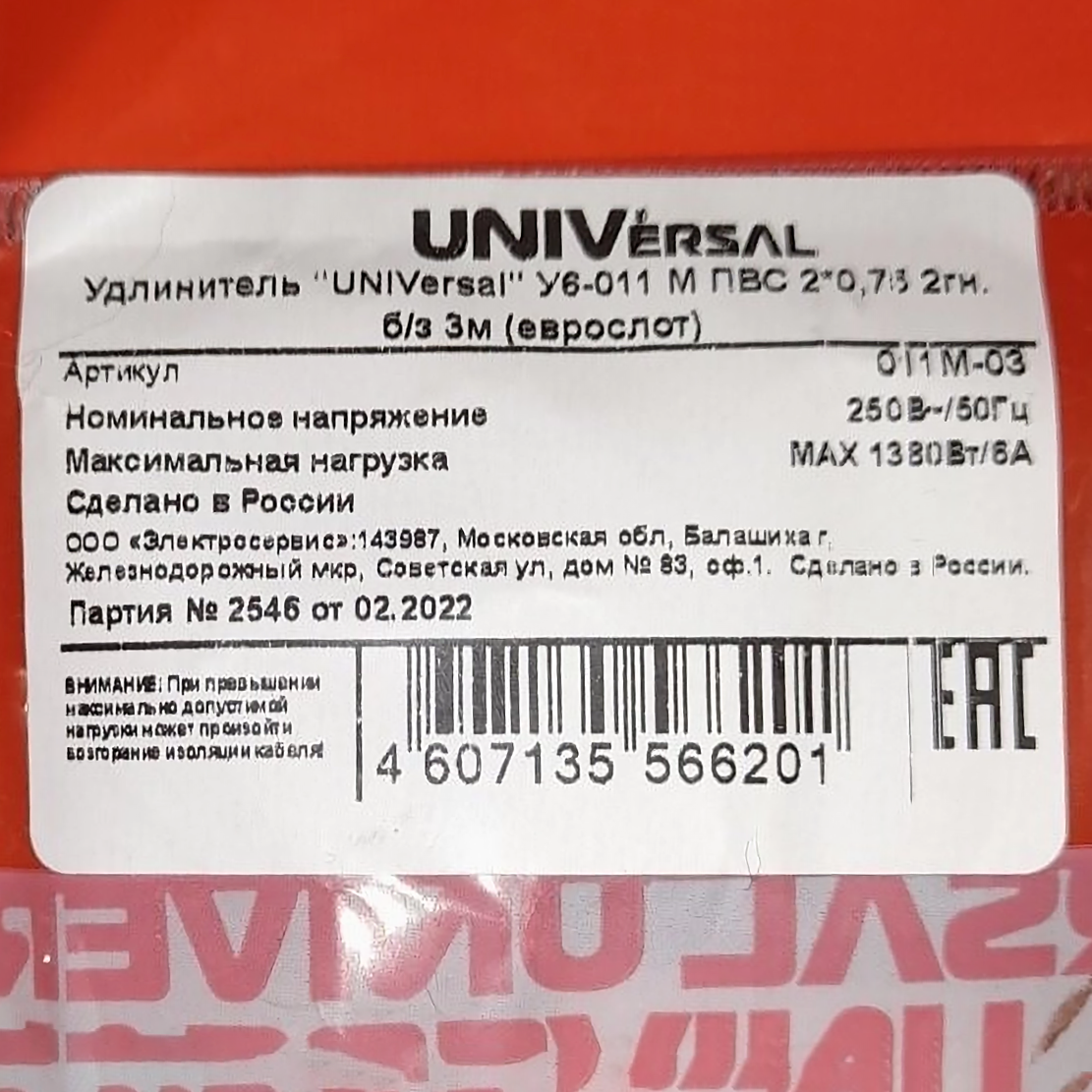 Удлинитель UNIVersal У6-011 М интересное: