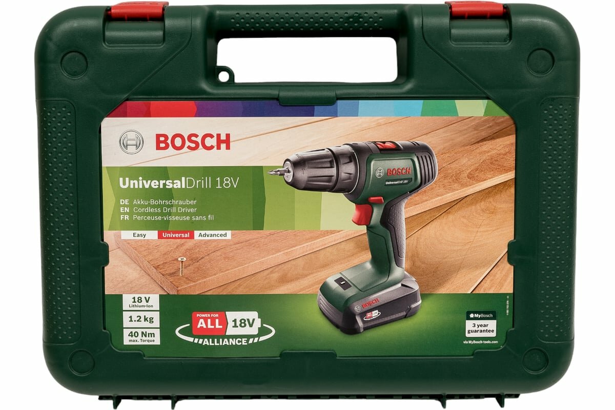 Дрель-шуруповерт Bosch Universaldrill, 1.5Ач, 1 аккум, кейс 06039d4005