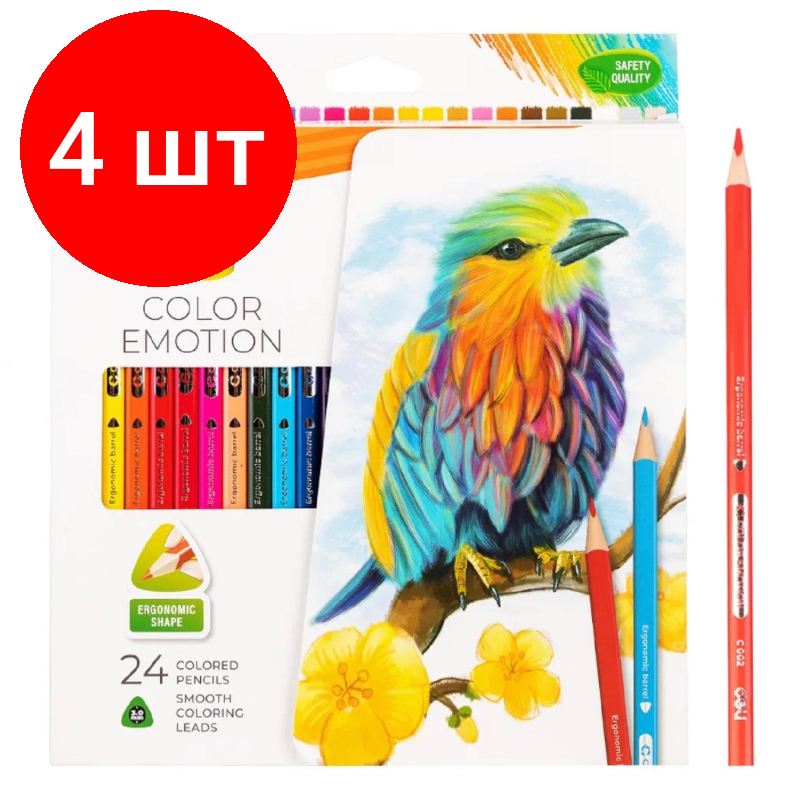 Купить Комплект 4 наб., Карандаши цветные Deli Color Emotion EC00220 трехгран. липа 24цв/наб