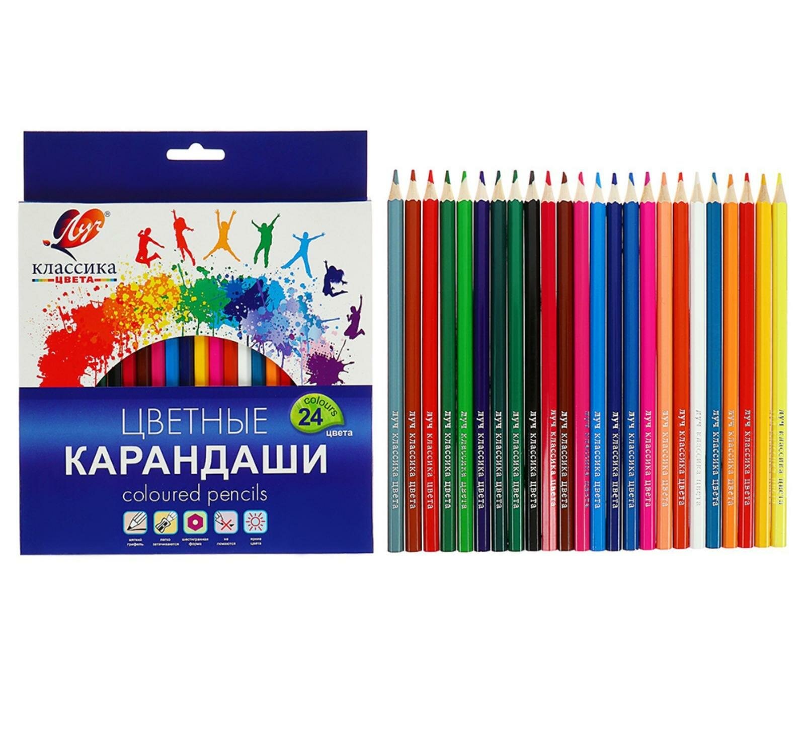 Цветные карандаши 24 цвета ''Классика'', шестигранные интересное: