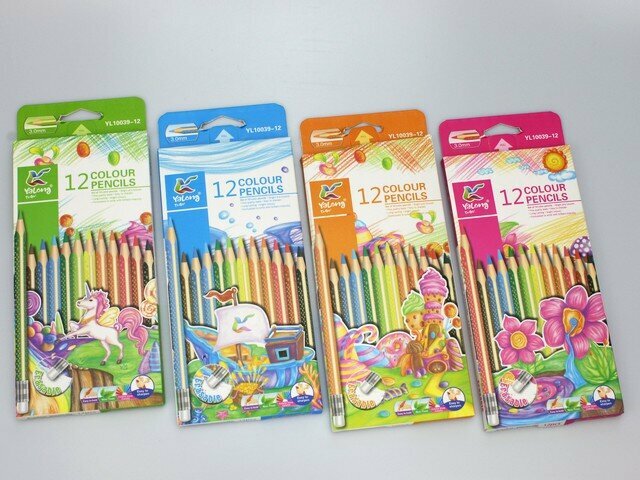 YALONG, Китай Карандаши цветные Yalong "Magic" 12цв., трехгранные, деревянные с ластиком.