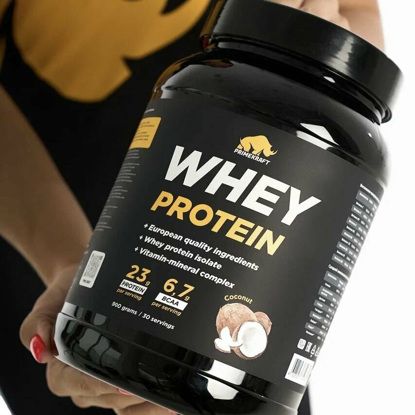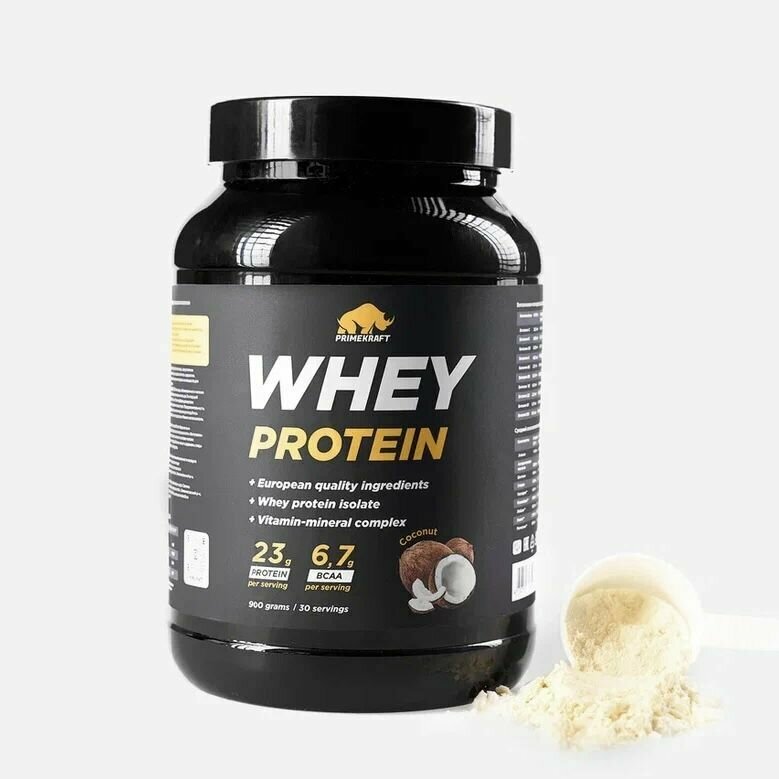 Купить Протеин сывороточный PRIMEKRAFT "Whey Protein" с витаминами и минералами, Кокос, банка 900 г