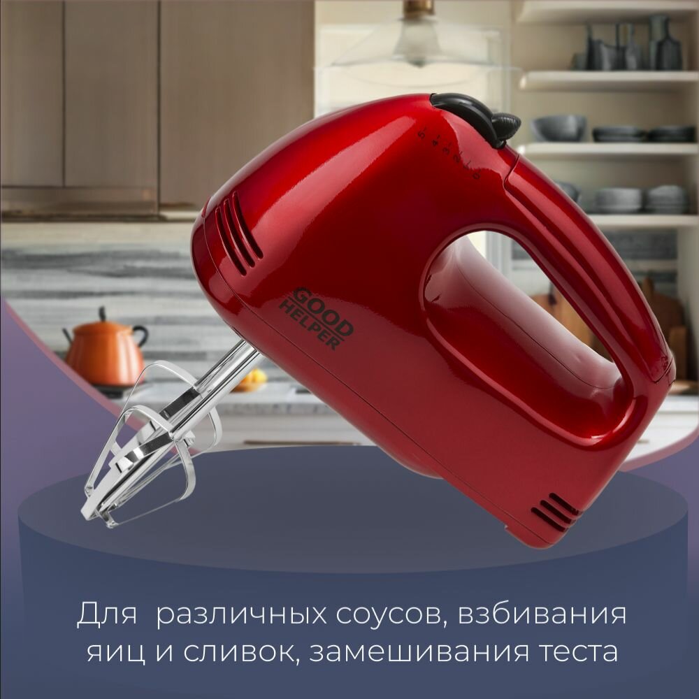 Миксер GOODHELPER HM-373, ручной, 300 Вт, 5 скоростей, 2 насадки, красный