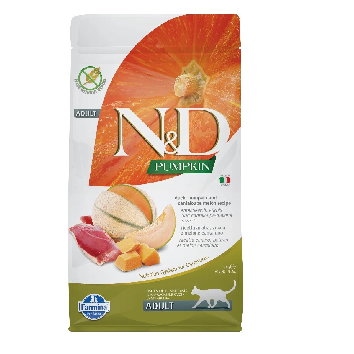 FARMINA CAT N&D GRAIN FREE PUMPKIN DUCK беззерновой для взрослых кошек с уткой, тыквой и дыней (5 кг)
