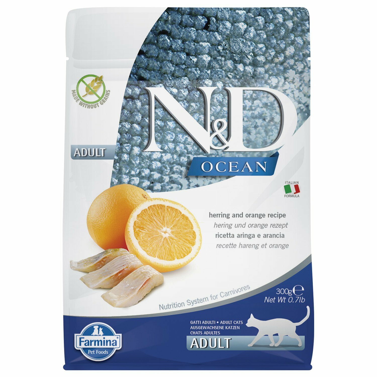 Сухой беззерновой корм с сельдью и апельсином для кошек Farmina N&D Ocean Adult, 1,5 кг