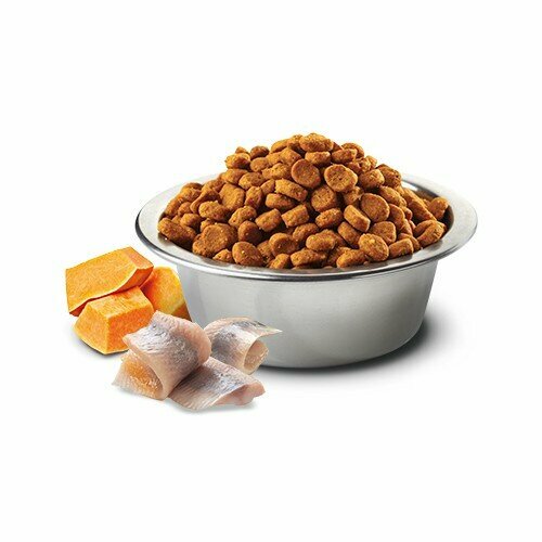 | Состав | свежая сельдь (30%), дегидратированная сельдь (28%), картофель, рыбий жир, дегидратированные цельные яйца, гидролизат животных белков, волокна гороха, сушеная морковь, сушеная люцерна, инулин, фруктоолигосахариды, маннанолигосахариды, дегидратированный сладкий апельсин (0,5%), дегидратированные яблоки, порошок граната, порошок шпината, подорожник (0,3%), порошок черной смородины, порошок черники, хлорид натрия, дрожжи сухие пивные, корень куркумы (0,2%), глюкозамин, хондроитин сульфат, экстракт календулы (источник лютеина) |