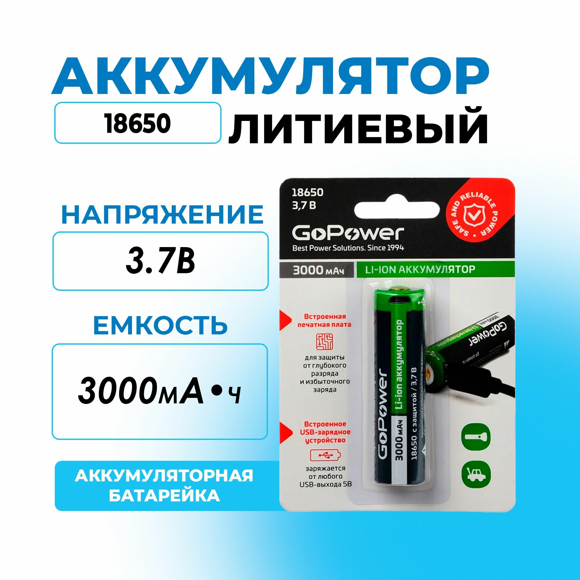 Аккумулятор литиевый 3,7В 3000 mAh Li-I 18650 GoPower интересное: