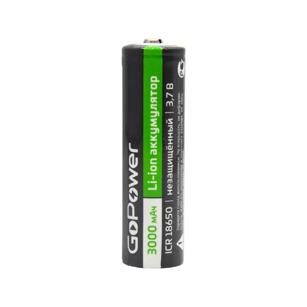 Аккумулятор Li-ion 18650 GoPower 3.7В ICR18650 3000мАч без защиты, в упаковке 1 шт.