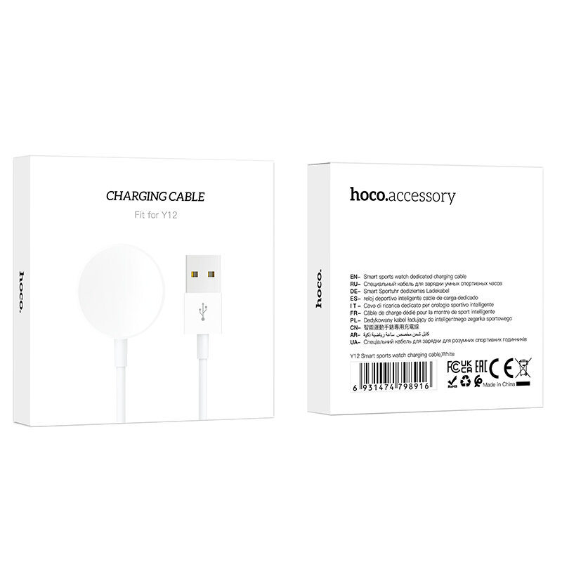 Кабель для зарядки смарт-часов Hoco Y12 Ultra, 83 см, белое