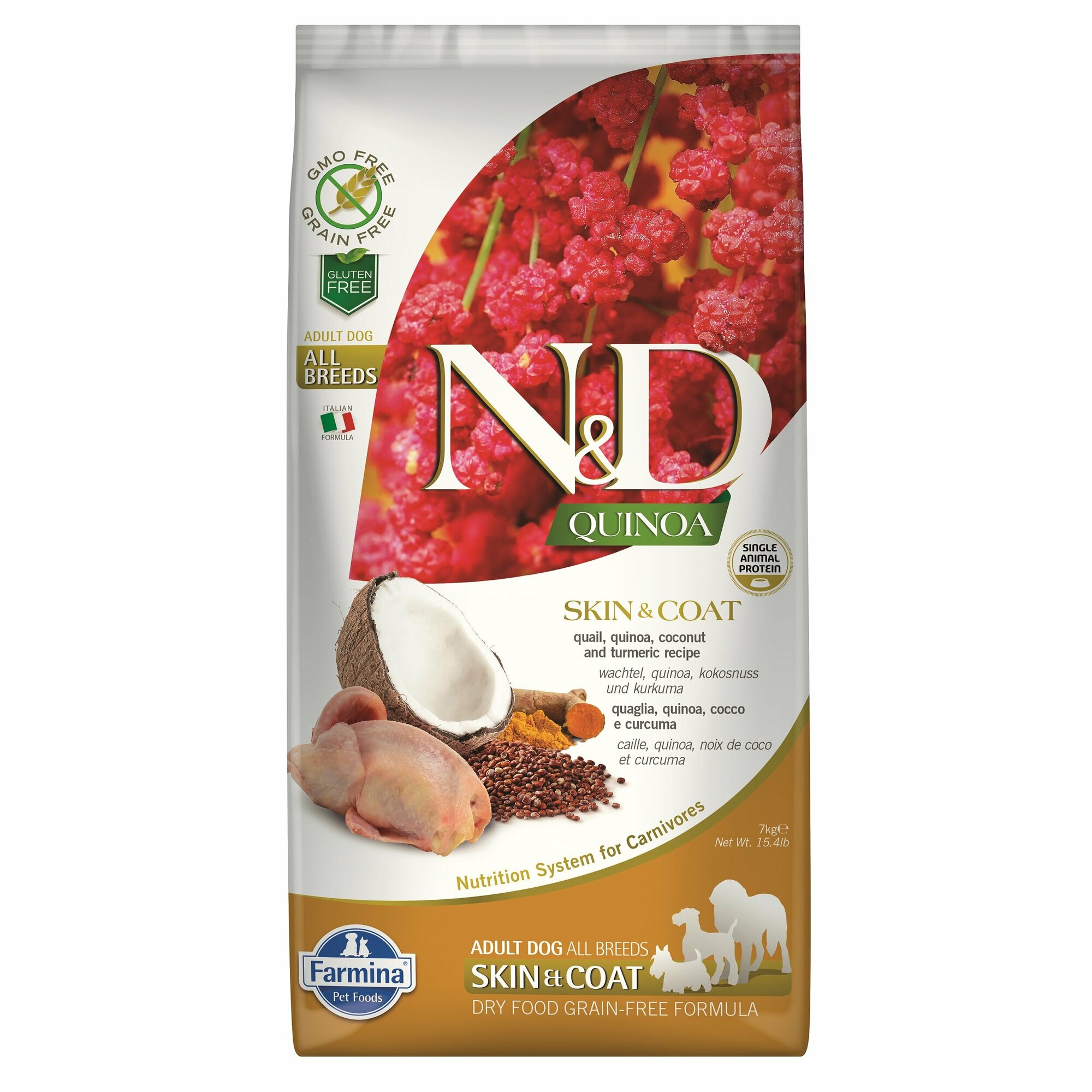 Купить Фармина 35684 N&D QUINOA Skin&Coat корм беззерновой для собак для здоровья кожи и шерсти Перепел с Киноа 7кг