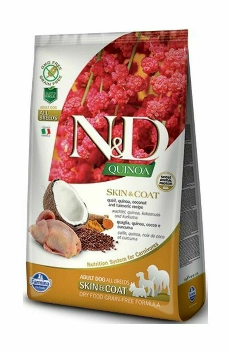 Farmina N&D Quinoa Dog Grain Free Skin & Coat Quail сухой беззерновой корм для взрослых собак для кожи и шерсти с перепелом и киноа - 2,5 кг