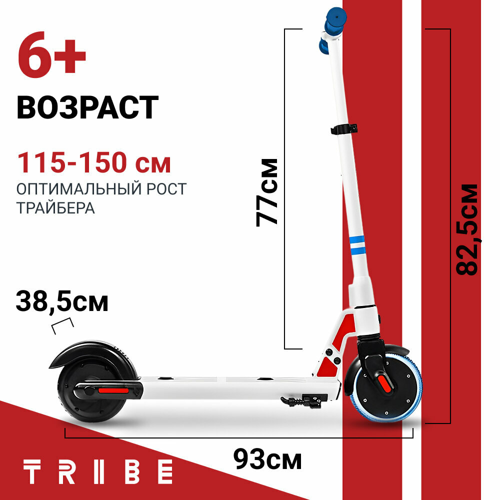 Электросамокат TRIBE Kid, бело-синий, 6" колеса, 200 Вт мотор, 2,6 Ач батарея, TRIBE TES-KID062600PURP