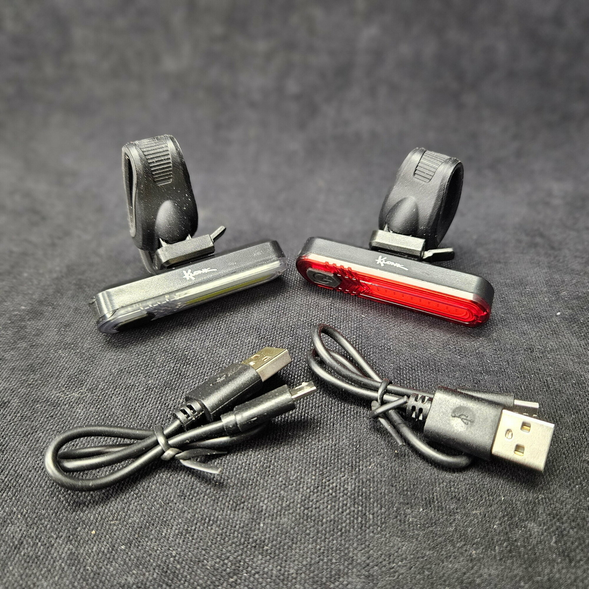Фонари для велосипеда Klonk 11952 (комплект: LED передн.+задн.), IPX4, micro USB, LiPo 3,7 V/ 330 mAh