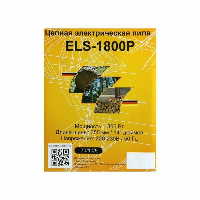 СохранитьHUTER Пила цепная Huter ELS-1800P, электрическая, 1800 Вт, 14", шаг 3/8", 1.3 мм, 53 зв. интересное: