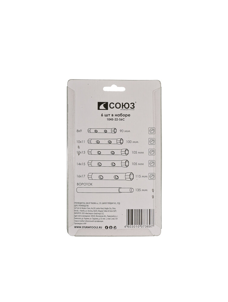 Набор ключей трубчатых торцевых 8х17мм оцинк. 6шт СОЮЗ 1045-22-S6C