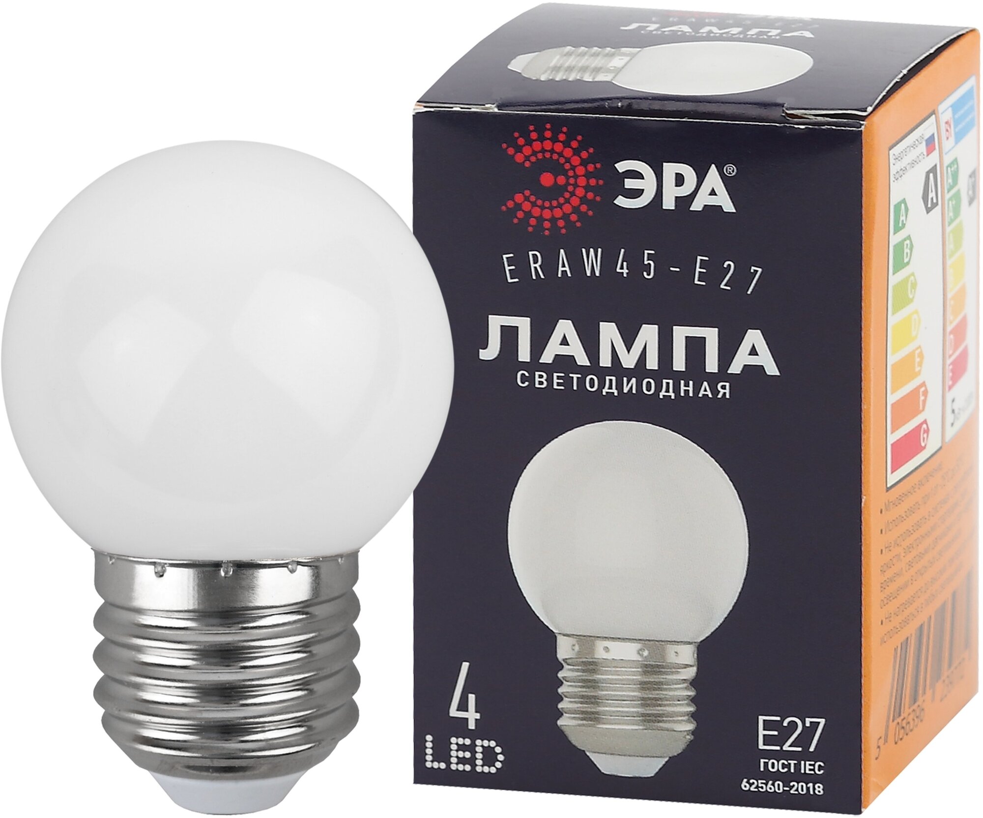 ЭРА ERAW45E27 LED Р451WE27 диод. шар, бел., 4SMD, 1W, E27, для белтлайт 10/100/6000 Б0049577