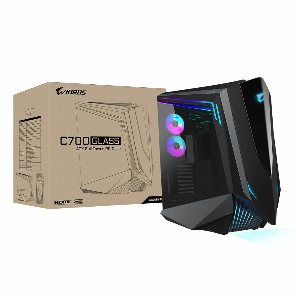 AORUS C700 Glass FullTower, E-ATX, USB-C x1, USB3.0 X4, HDMI x1, Audio I/O, Black, TG