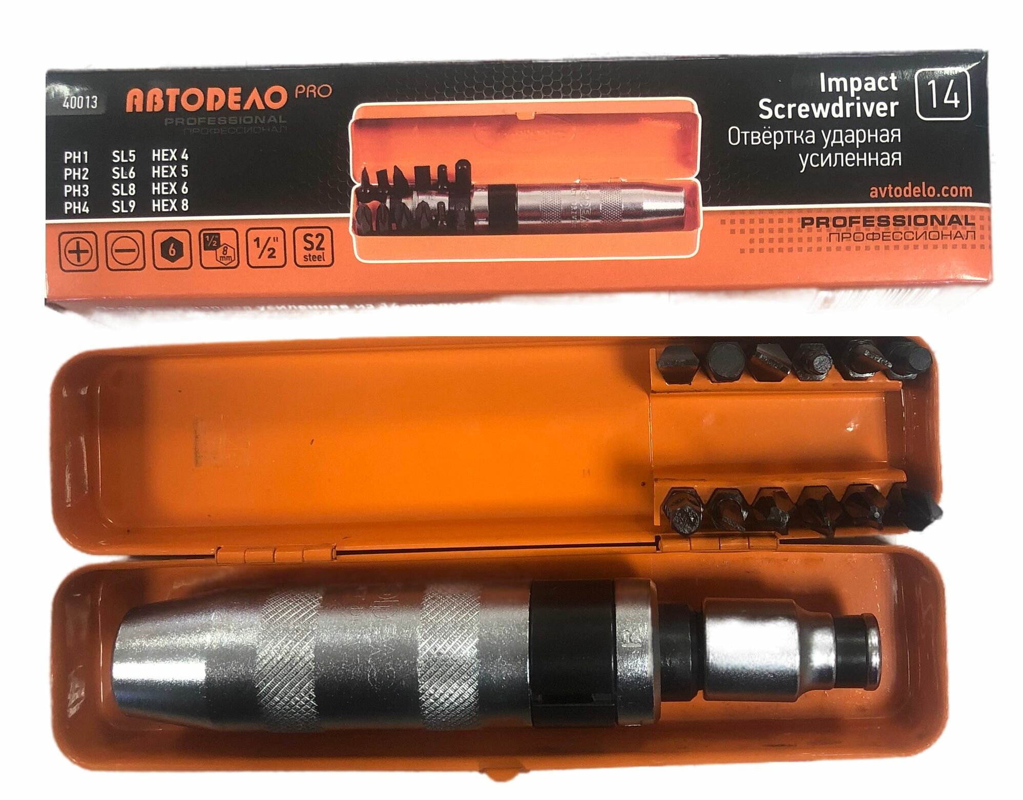 Отвертка Ударная 12насадок S2 В Мет.Футляре Professional Автодело АвтоDело арт. 40013