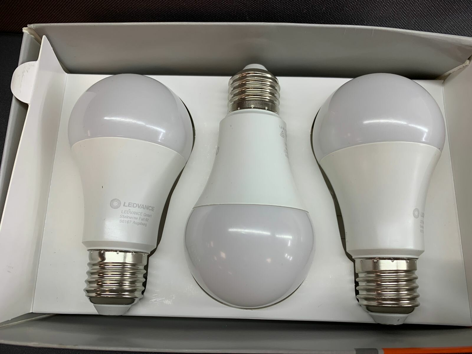 Ниже Вы можете прочитать отзывы на Упаковка светодиодных ламп 3 шт. LEDVANCE Smart+ WiFi Classic Multicolour, E27, A75, 9.5 Вт, 6500 К, ознакомится с подробными характеристиками, посмотреть интересные обзоры и фотографии на Упаковка светодиодных ламп 3 шт. LEDVANCE Smart+ WiFi Classic Multicolour, E27, A75, 9.5 Вт, 6500 К.