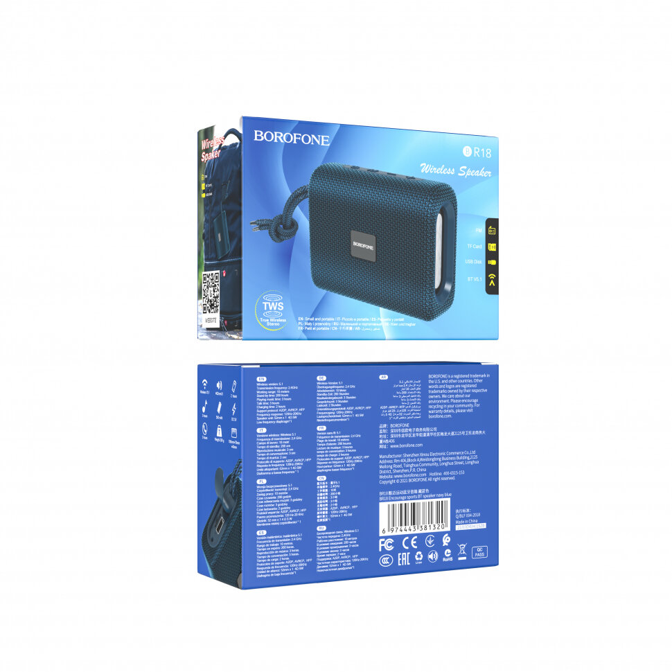 Портативная колонка BOROFONE BR18 Encourage, Bluetooth, пластик, FM, TF, TWS, темно-синий (6974443381320)