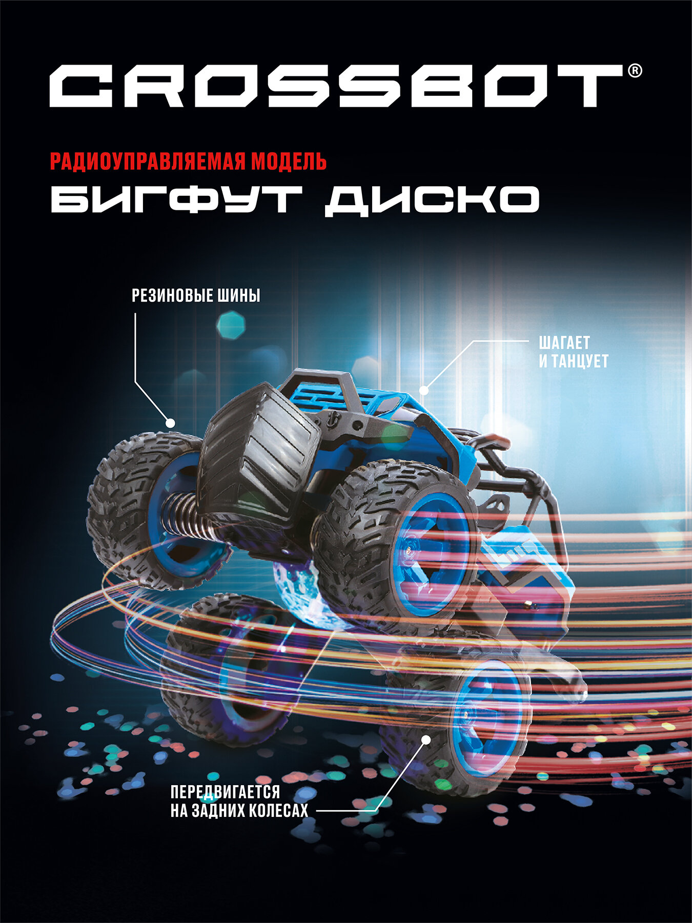 Машинка на радиоуправлении Crossbot Бигфут Диско танцует, 3D подсветка, синий