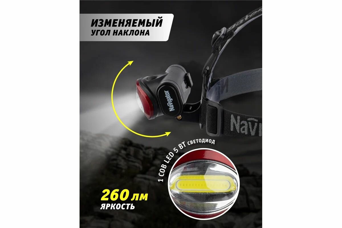 Фонарь налобный Navigator 82 364 NPT-H22-3AAA, 3 режима 1COB LED 5 Вт