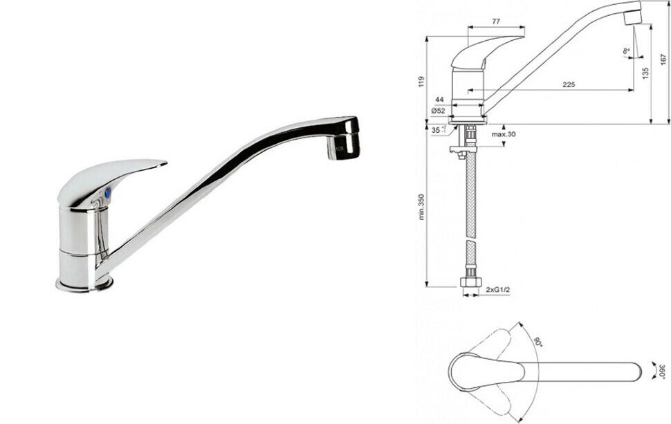 | Минусы: | Неудачное крепление: крепится 1 гайкой на шпильке. Если постоянно крутить кран - гайка понемногу ослабевает. Но если зафиксировать и не трогать - держится как надо. |