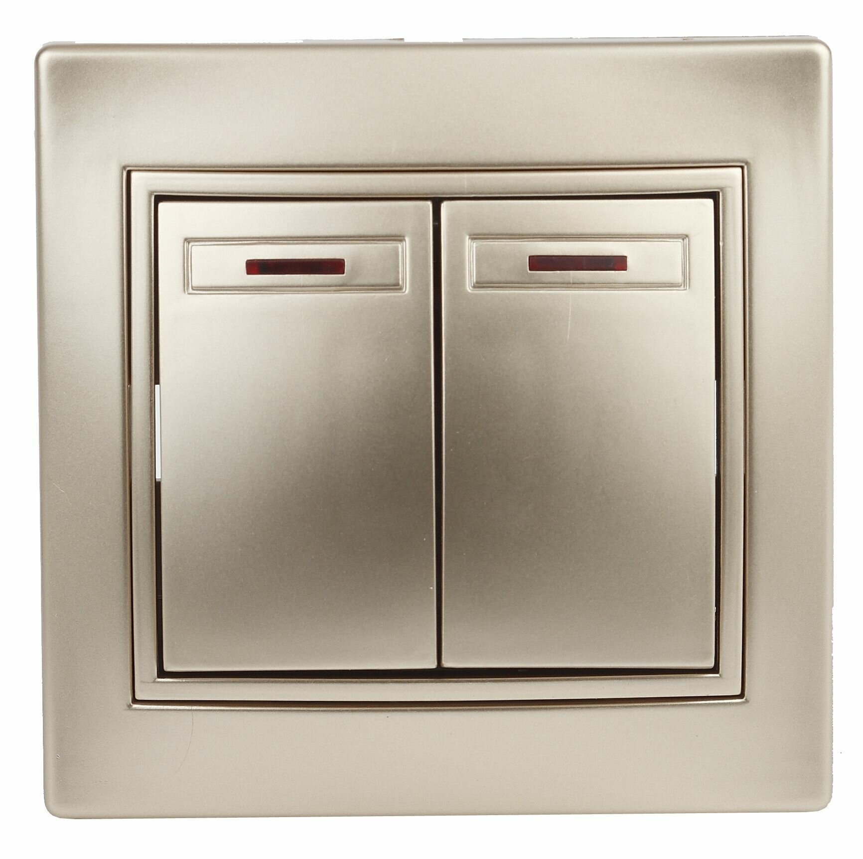 Купить Выключатель Intro Plano 1-105-04 двухклавишный с подсветкой 10А-250В IP20 СУ шампань