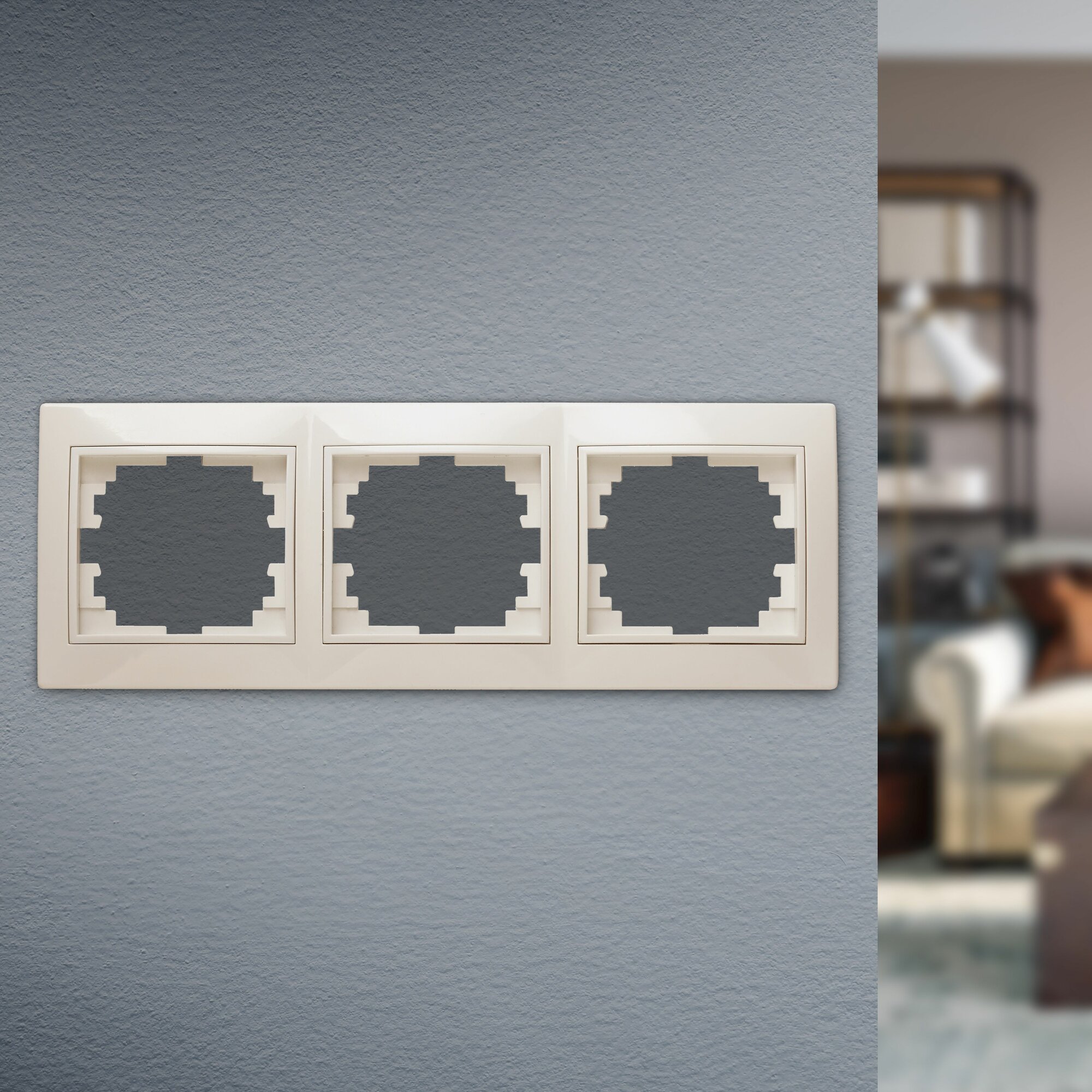 Рамка электроустановочная ЭРА Intro Plano 1-503-02 Б0027628 горизонтальная скрытой установки слоновая кость, 3 поста / для розеток и выключателей / электроустановочное изделие