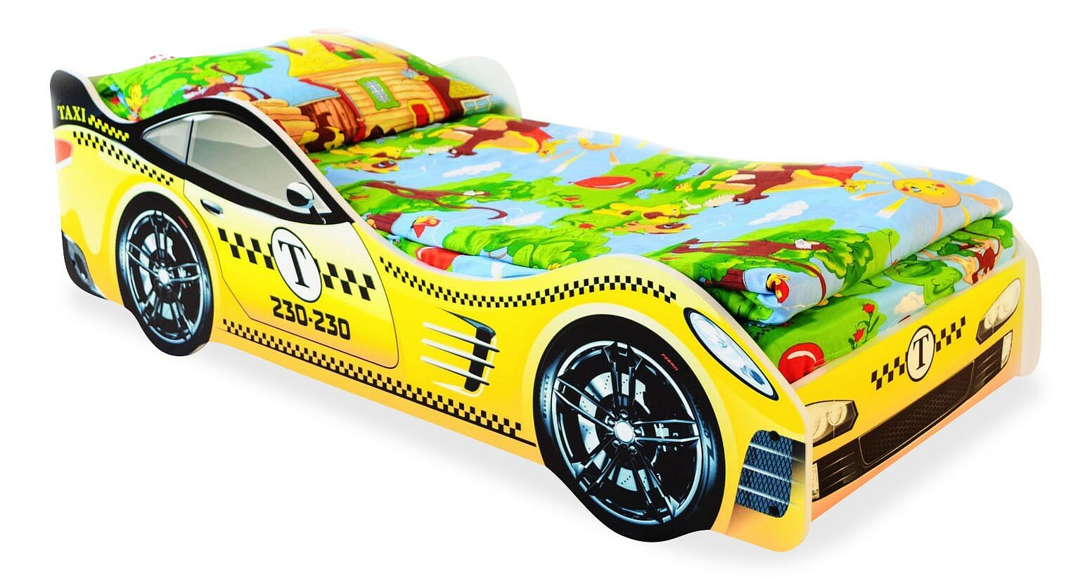 Купить Детская кровать машина Такси с ортопедическим основанием и бортиком