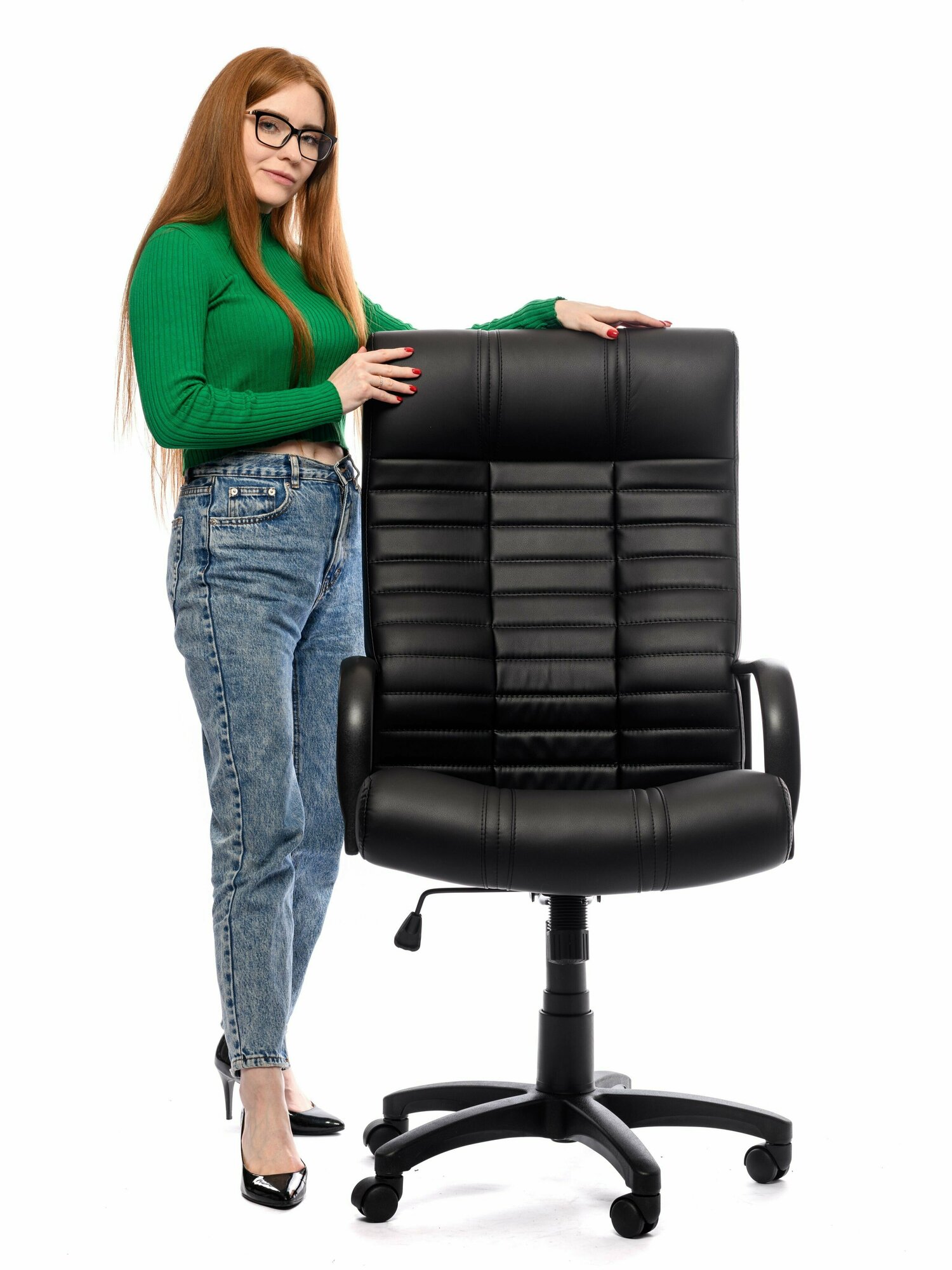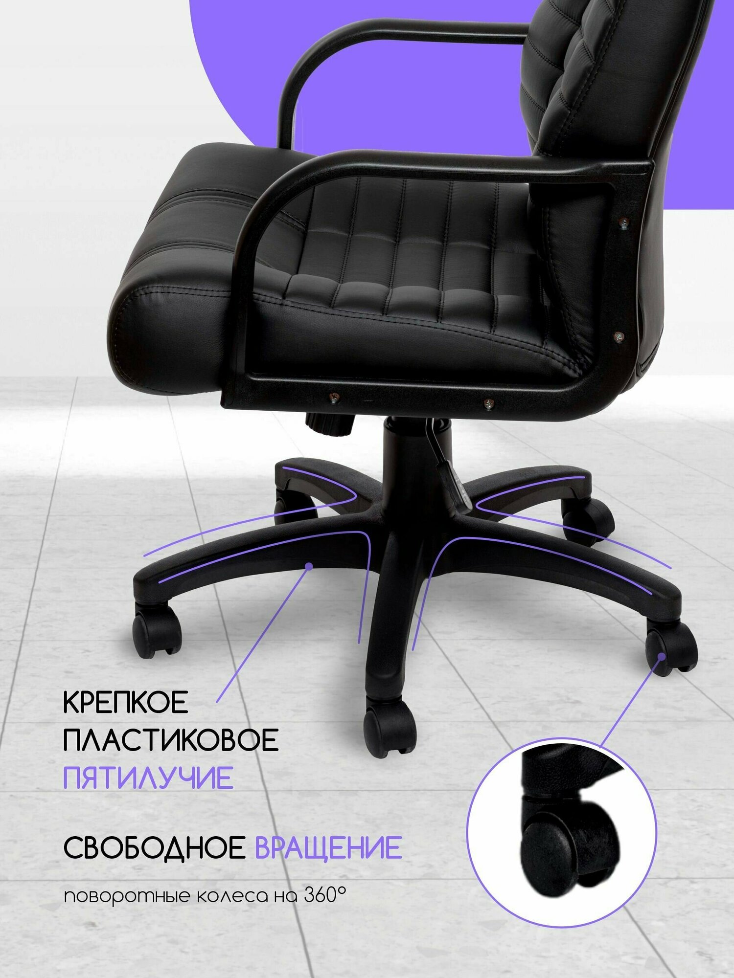 Кресло компьютерное офисное роскресла Атлант-1, стул крутящийся на колесиках, черная экокожа
