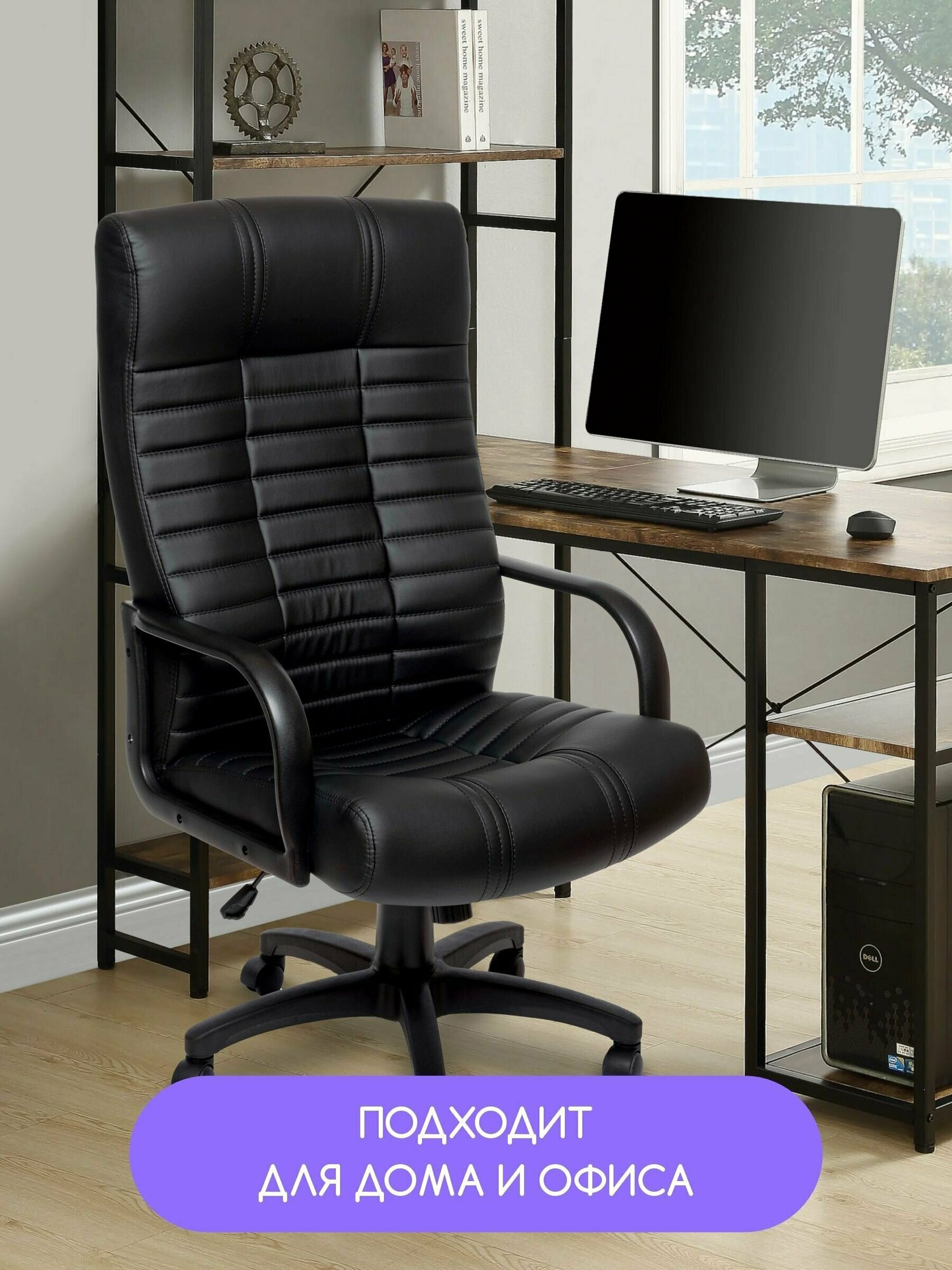 Компьютерное офисное кресло руководителя стул Атлант-1 экокожа/черный