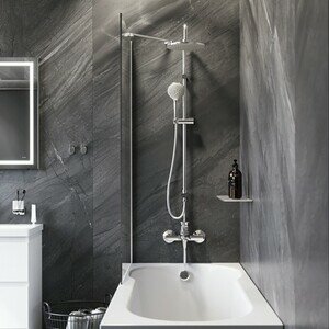 | Отзыв: | Даже близко не стояла с тканевой шторкой. Она хоть и не на всю ванну, но 80 см по уши хватает для того, чтобы не залить пол. Крепится к стене и вплотную на борт ванной, все плотнячком, воде негде пройти. Быстро высыхает, разводов особо нет. Стекло толстое. |