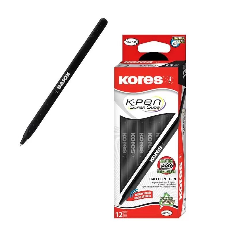 Купить Ручка шариковая неавтомат. KORES K0R-MSuperSlide0.5треу.черн.рез.корп
