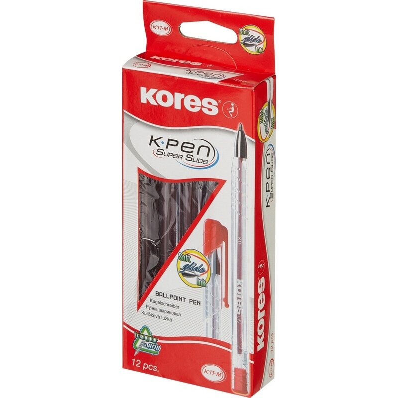 Ручка шариковая Kores К11 (0.7мм, красный цвет чернил, корпус прозрачный, масляная основа) 12шт.
