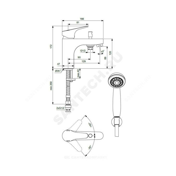 Смеситель на борт ванны Vidima Next, арт. BA402AA, на 1 отв., с душевым гарнитуром