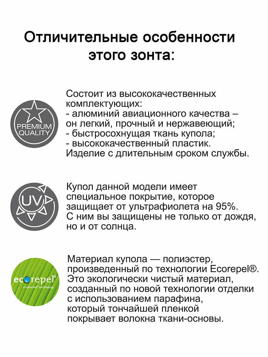 | Особенности модели | мини-зонт, система «антиветер», чехол в комплекте |