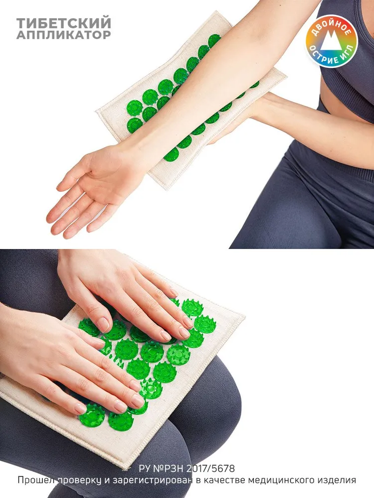 Массажер Тибетский аппликатор для чувствительной кожи коврик 12х22 см зеленый 1 шт